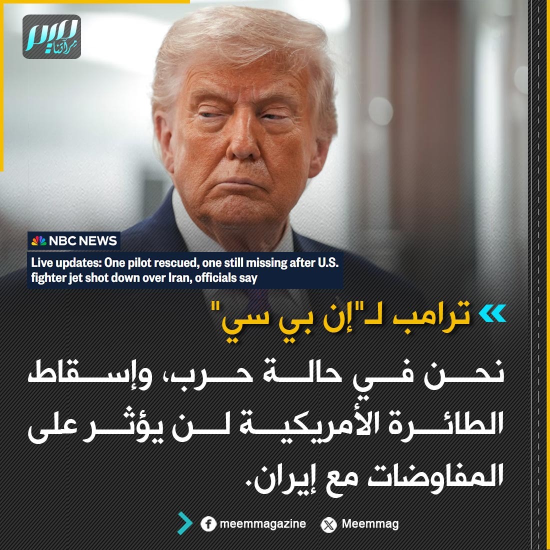 ترامب لـ"إن بي سي": نحن في حالة حرب