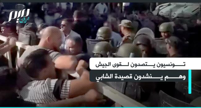 تونسيون يصدون لقوى الأمن والجيش في مدينة قابس وهم ينشدون قصيدة شهيرة لابن بلادهم أبي القاسم الشابي: "إذا الشعب يوما أراد الحياة".