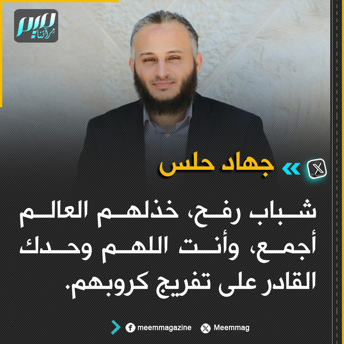 جهاد حلس: شباب رفح، خذلهم العالم أجمع، وأنت اللهم وحدك القادر على تفريج كروبهم.