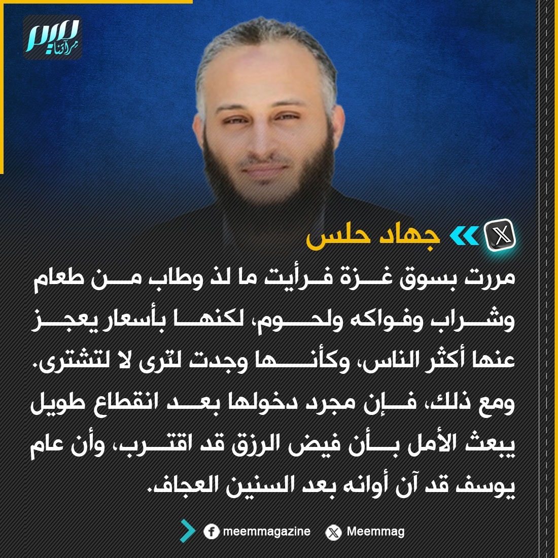 جهاد حلس: مررت بسوق غزة فرأيت خيرات كثيرة يعجز الناس عن شرائها