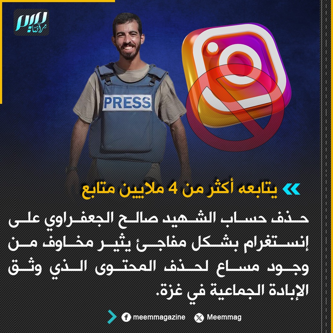 حذف حساب الشهيد صالح الجعفراوي على إنستغرام بشكل مفاجئ يثير مخاوف من وجود مساع لحذف المحتوى الذي وثق الإبادة الجماعية في غزة.