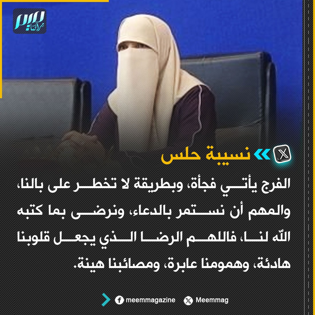حلس: الفرج يأتي فجأة، وبطريقة لا تخطر على بالنا، والمهم أن نستمر بالدعاء، ونرضى بما كتبه الله لنا، فاللهم الرضا الذي يجعل قلوبنا هادئة، وهمومنا عابرة، ومصائبنا هينة.