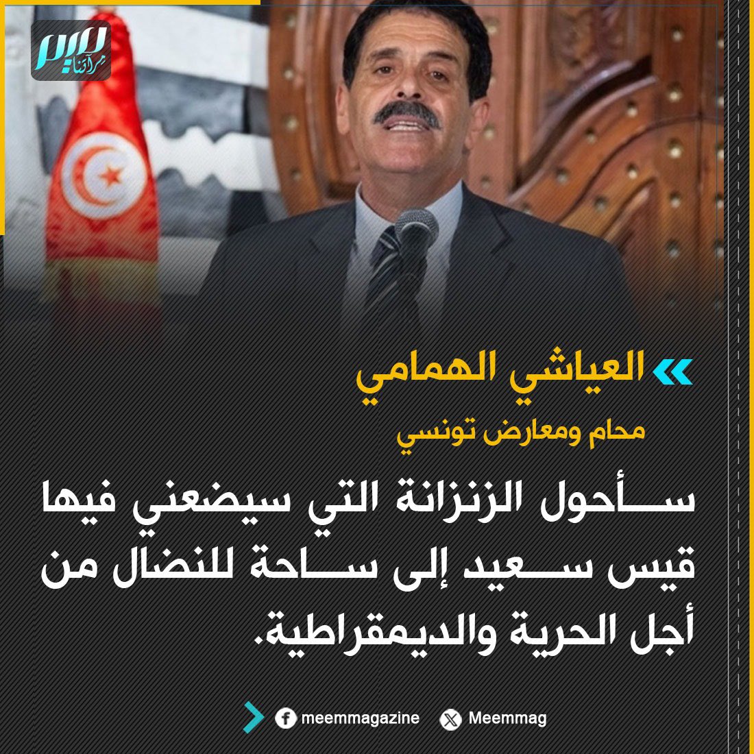 يُذكر أن سلطة الانقلاب في تونس اعتقلت العياشي الهمامي لتنفيذ حكم نهائي بالسجن لمدة خمس سنوات في قضية ملفقة.