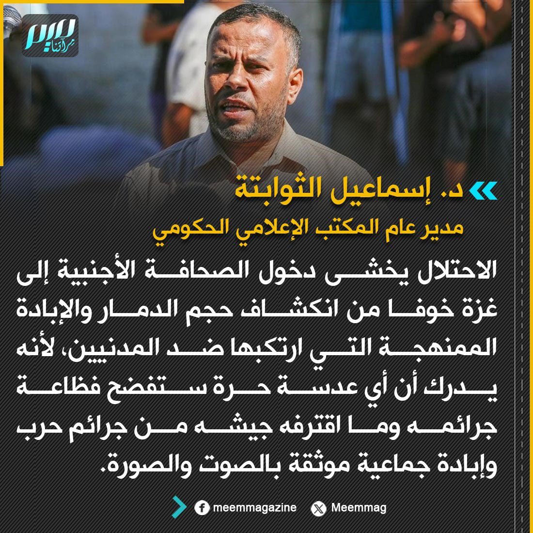 د. إسماعيل الثوابتة: الاحتلال يخشى دخول الصحافة الأجنبية إلى غزة خوفا من انكشاف حجم الدمار والإبادة الممنهجة التي ارتكبها ضد المدنيين.