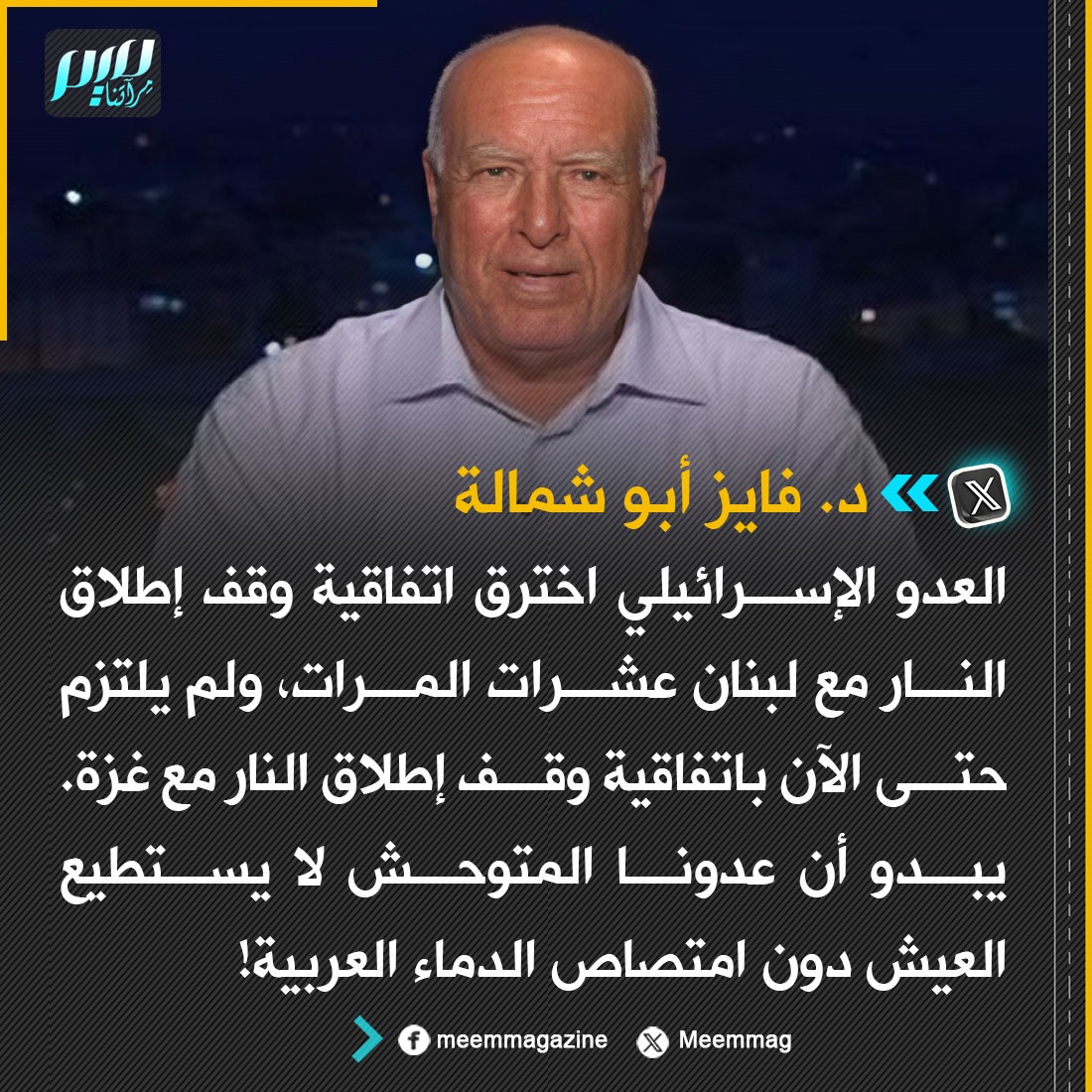 د. فايز أبو شمالة: يبدو أن عدونا المتوحش لا يستطيع العيش دون امتصاص الدماء العربية!