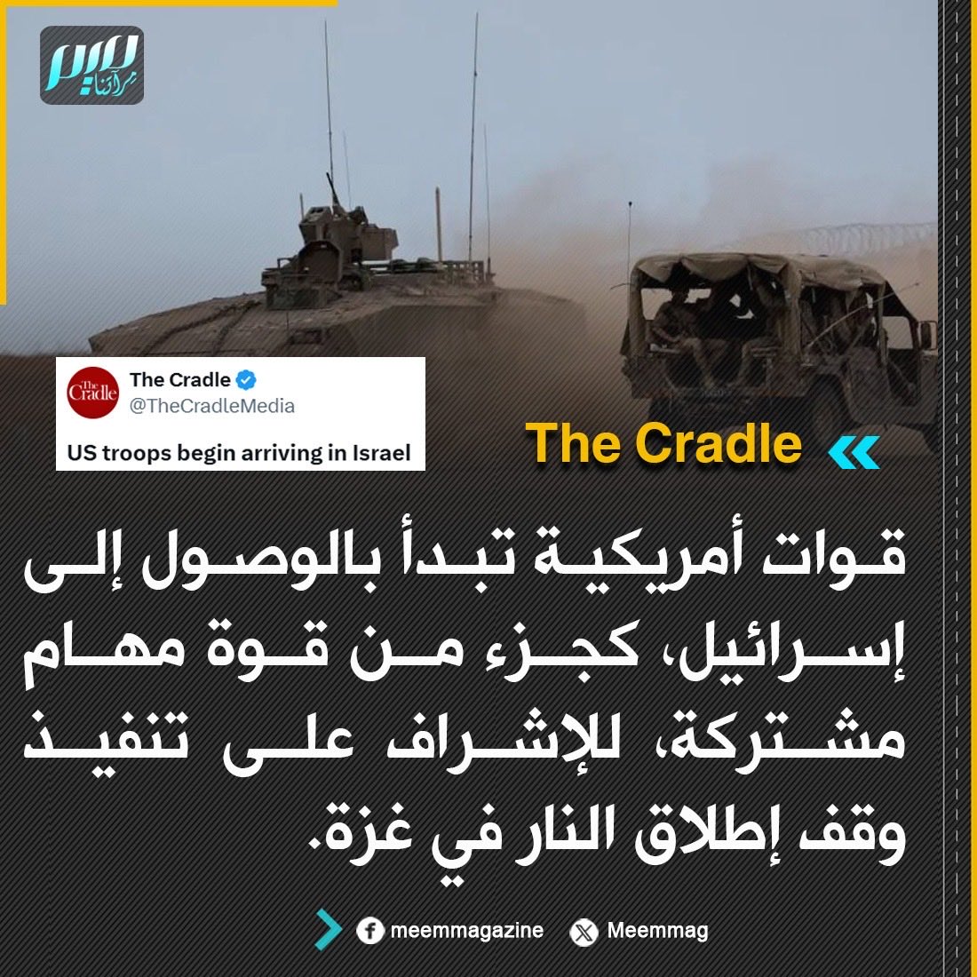 ذا كريدل: قوات أمريكية تبدأ بالوصول إلى إسرائيل، كجزء من قوة مهام مشتركة، للإشراف على تنفيذ وقف إطلاق النار في غزة.