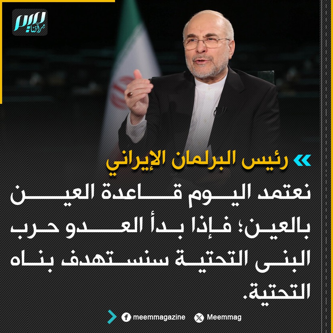 رئيس البرلمان الإيراني: نعتمد اليوم قاعدة العين بالعين