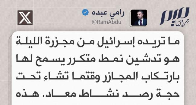 رامي عبده: ما تريده إسرائيل من مجزرة الليلة هو تدشين نمط متكرر يسمح لها بارتكاب المجازر