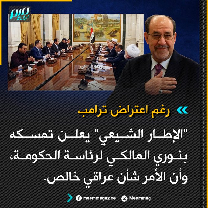 رغم اعتراض ترامب.. "الإطار الشيعي" يعلن تمسكه بنوري المالكي لرئاسة الحكومة، وأن الأمر شأن عراقي خالص.