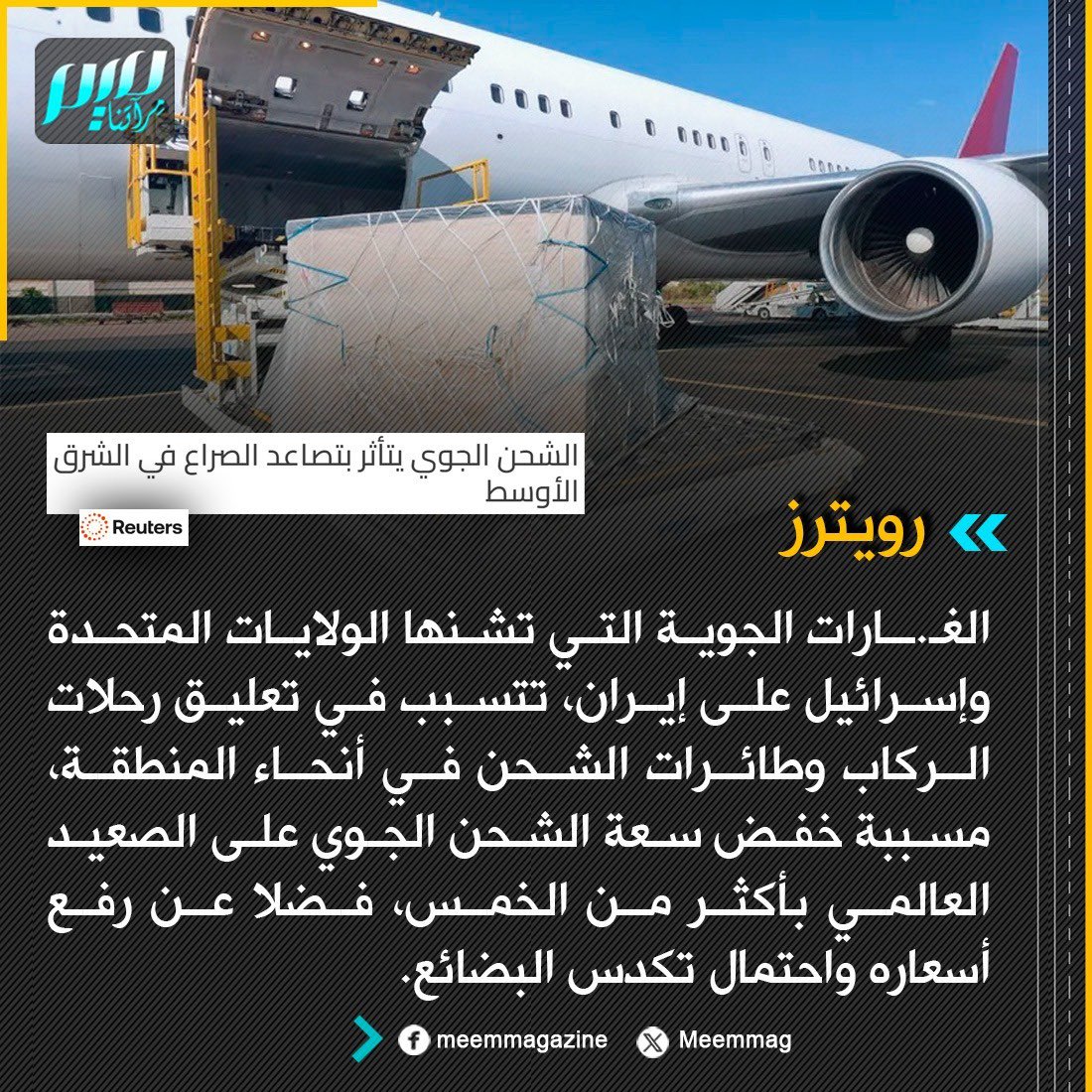 رويترز: الغـ.ـارات الجوية التي تشنها الولايات المتحدة وإسرائيل على إيران، تتسبب في تعليق رحلات الركاب وطائرات الشحن في أنحاء المنطقة، مسببة خفض سعة الشحن الجوي على الصعيد العالمي بأكثر من الخمس، فضلا عن رفع أسعاره واحتمال تكدس البضائع.