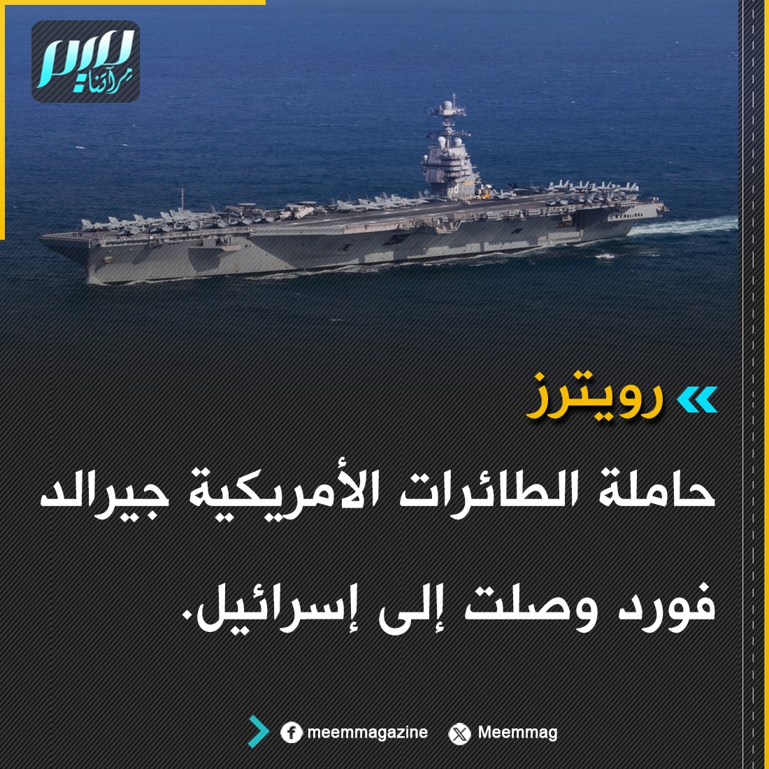 رويترز: حاملة الطائرات الأمريكية جيرالد فورد وصلت إلى إسرائيل.