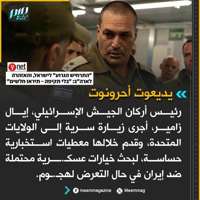 زامير أجرى زيارة سرية إلى الولايات المتحدة، قدم خلالها معطيات استخبارية حساسة، لبحث خيارات عسكرية محتملة ضد إيران.