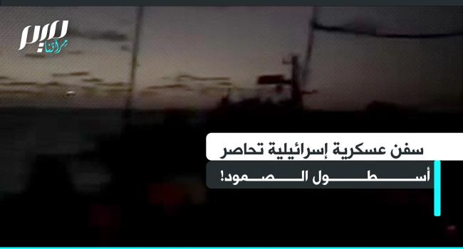 مقطع فيديو يوثق لحظة قيام عدد من السفن العسكرية الإسرائيلية بمحاصرة "أسطول الصمود العالمي" المتجه نحو غزة، وذلك خلال مناورة تجريبية، وفقا لما ذكره نشطاء مشاركون في الأسطول.