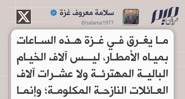 سلامة معروف: ما يغرق في غزة هذه الساعات بمياه الأمطار، ليس آلاف الخيام البالية المهترئة ولا عشرات آلاف العائلات النازحة المكلومة؛ وإنما الغرق لكرامة أمة هامدة تعدادها فاق المليار، ولنخوة أمة ممتدة من المحيط للخليج، كنا نظنها يوما الوطن الأكبر.