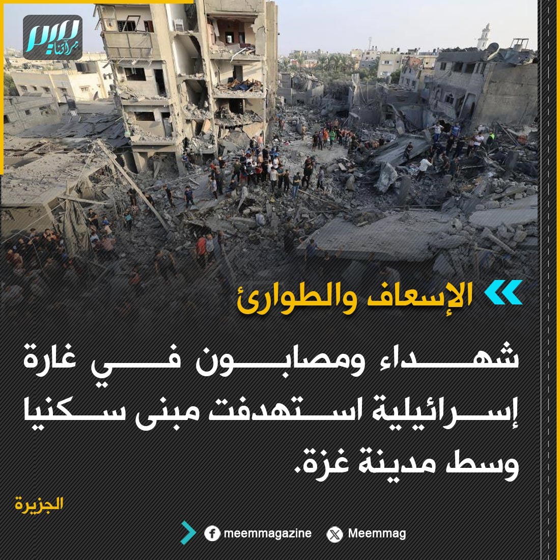 شهداء ومصابون في غارة إسرائيلية استهدفت مبنى سكنيا وسط مدينة غزة.
