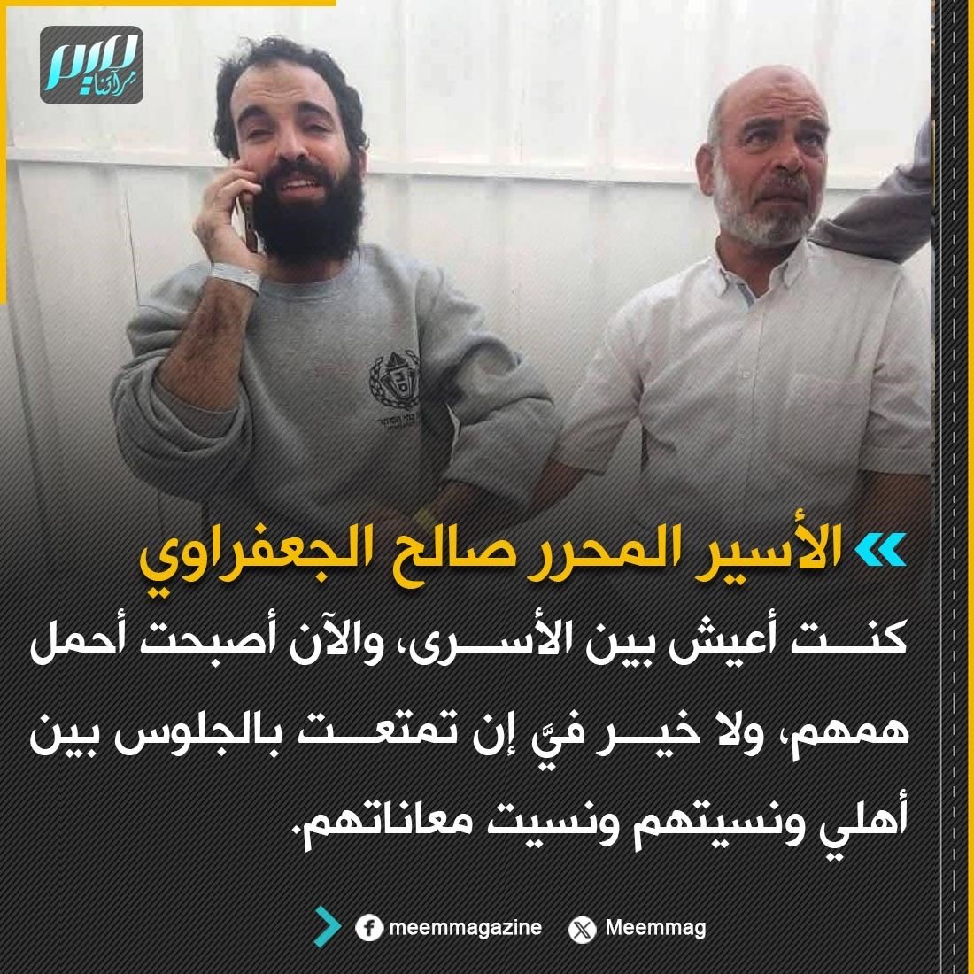 الأسير المحرر صالح الجعفراوي: كنت أعيش بين الأسرى، والآن أصبحت أحمل همهم، ولا خير فيَّ إن تمتعت بالجلوس بين أهلي ونسيتهم ونسيت معاناتهم.