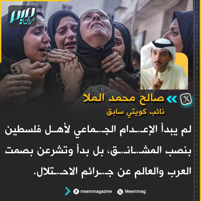 صالح محمد الملا: لم يبدأ الإعـ.ـدام الجماعي لأهل فلسطين بنصب المشـ.ـانق، بل بدأ وتشرعن بصمت العرب والعالم عن جـ.ـرائم الاحـ.ـتلال.