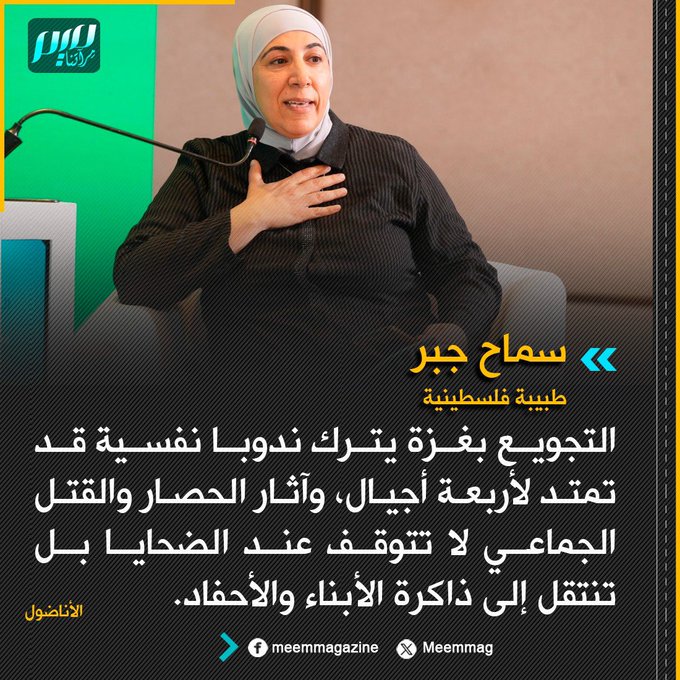طبيبة فلسطينية: التجويع بغزة يترك ندوبا نفسية قد تمتد لأربعة أجيال، وآثار الحصار والقتل الجماعي لا تتوقف عند الضحايا بل تنتقل إلى ذاكرة الأبناء والأحفاد.