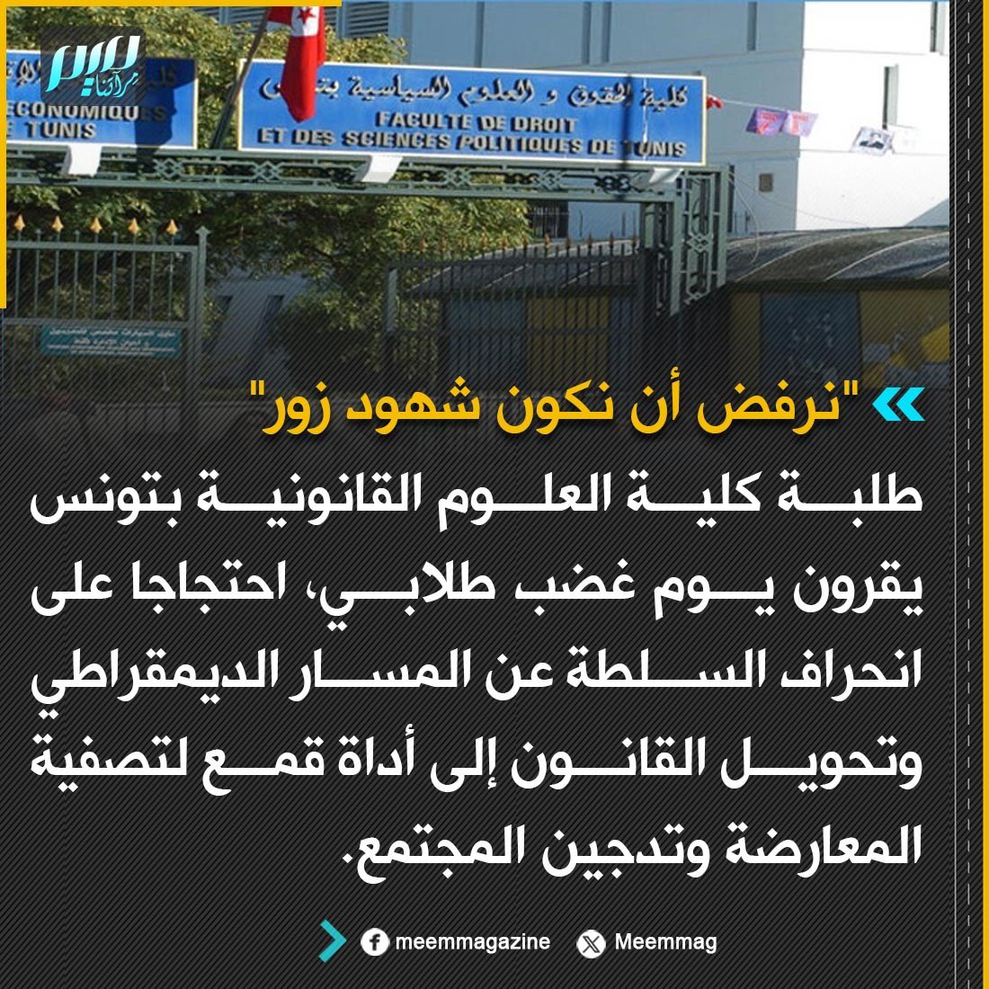 طلبة كلية العلوم القانونية بتونس يقرون يوم غضب طلابي، احتجاجا على انحراف السلطة عن المسار الديمقراطي وتحويل القانون إلى أداة قمع لتصفية المعارضة وتدجين المجتمع.