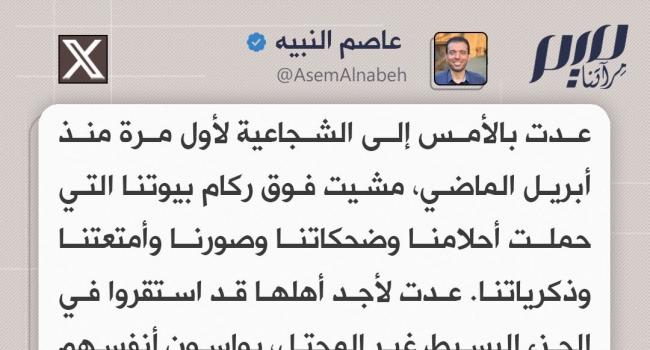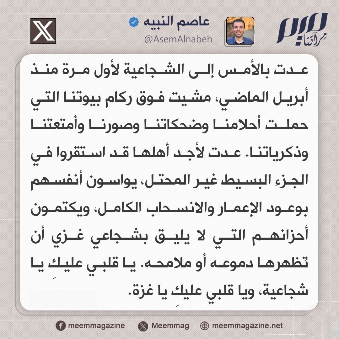 عاصم النبيه: يا قلبي عليكِ يا شجاعية، ويا قلبي عليكِ يا غزة.