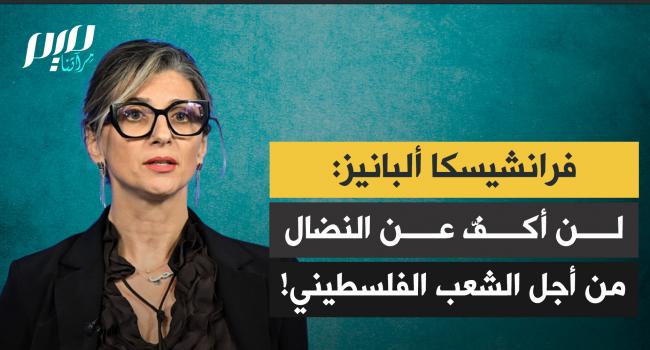 المقررة الأممية فرانشيسكا ألبانيز: "لو كانت لدي فرصة للهروب، ربما فعلت، لكني لا أستطيع أن أسمح لنفسي بذلك. يسألونني هل سننجو؟ هل ستتحقق العدالة للفلسطينيين؟ أقول: ذلك لا يهمّ. كل ما سأفعله هو أن أواصل النضال ضد الظلم الذي أُلحق بالشعب الفلسطيني. وأنا أتحمّل الجراح التي تُصيبني أو تُلحق بي بسبب ما أفعله اليوم، لكنني أعلم أنني لن أندم."