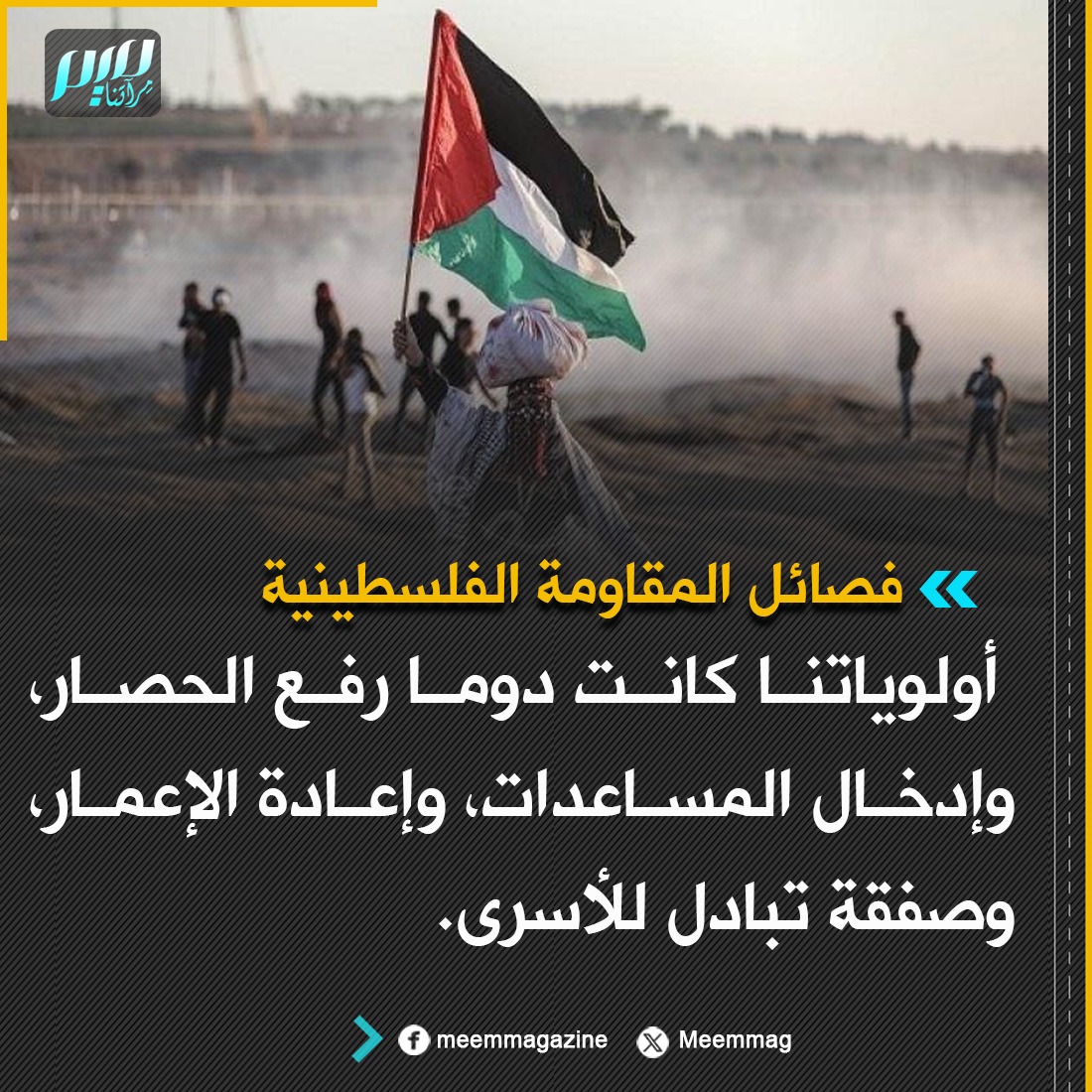 فصـ ـائل المقـ ـاومة الفلسطينية: أولوياتنا كانت دوما رفع الحصار، وإدخال المساعدات، وإعادة الإعمار، وصفقة تبادل للأسرى.