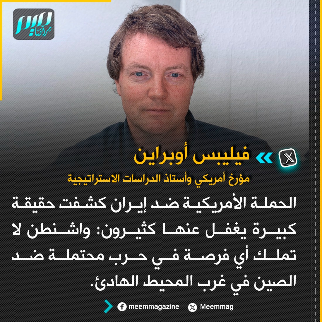 فيليبس أوبراين: الحملة الأمريكية ضد إيران كشفت حقيقة كبيرة يغفل عنها كثيرون: واشنطن لا تملك أي فرصة في حرب محتملة ضد الصين في غرب المحيط الهادئ.
