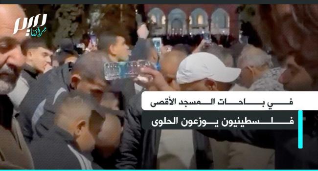 فرحة في باحات المسجد الأقصى.. فلسطينيون يوزعون الح…