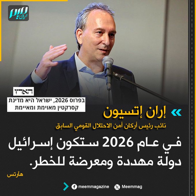 "في عام 2026 ستكون إسرائيل دولة مهـ ـددة ومعرضة للخـ ـطر".. عنوان مقال لنائب رئيس أركان أمن الاحتلال القومي السابق في صحيفة "هآرتس" العبرية.