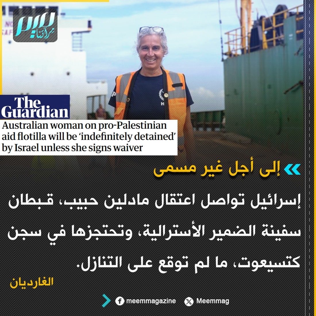إلى أجل غير مسمى، مادلين حبيب، قبطان سفينة الضمير الأسترالية محتجزة في سجن إسرائيلي!
