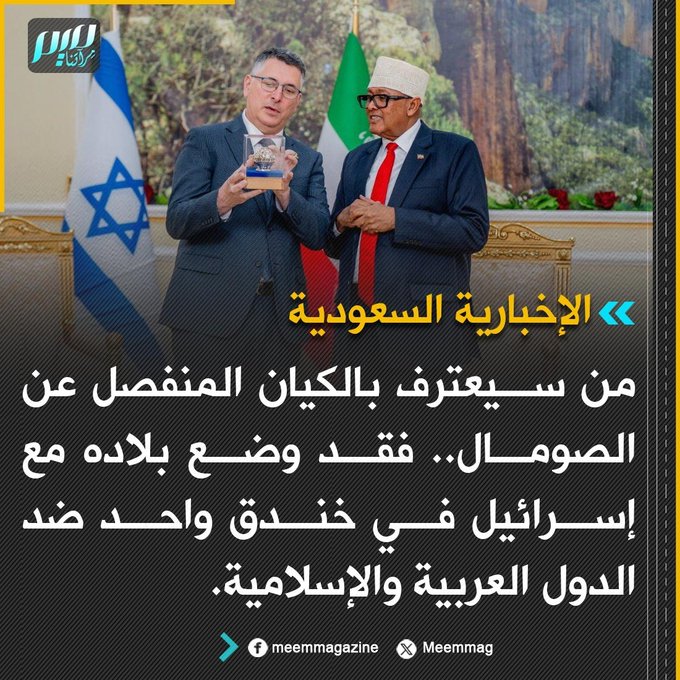 قناة الإخبارية السعودية: من سيعترف بالكيان المنفصل عن الصومال، فقد وضع بلاده مع إسرائيل في خندق واحد ضد الدول العربية والإسلامية.