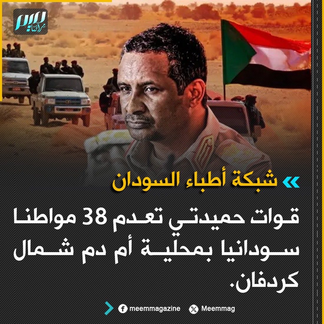شبكة أطباء السودان: قوات حميدتي تعدم 38 مواطنا سودانيا بمحلية أم دم شمال كردفان.