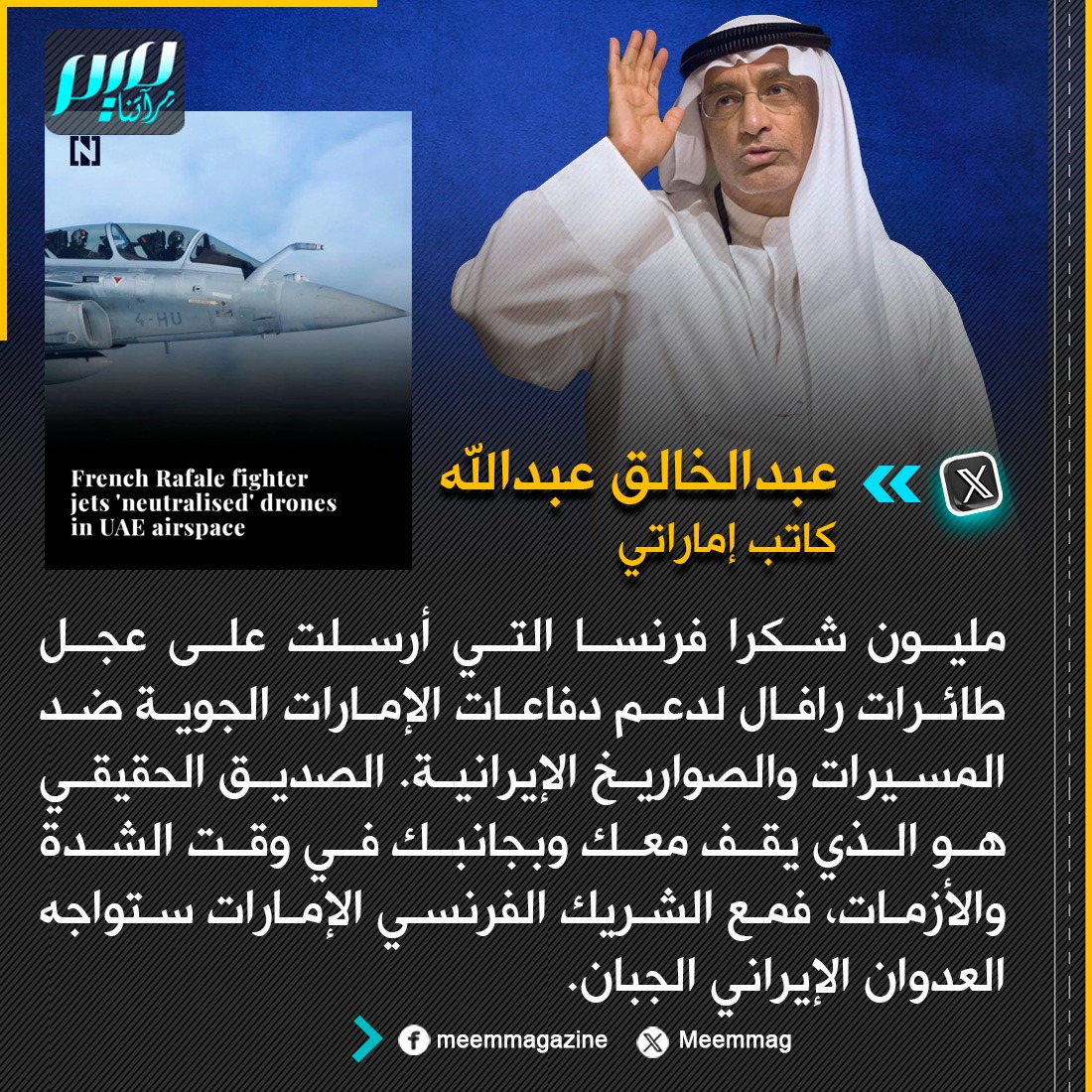 كاتب إماراتي: مليون شكرا فرنسا.