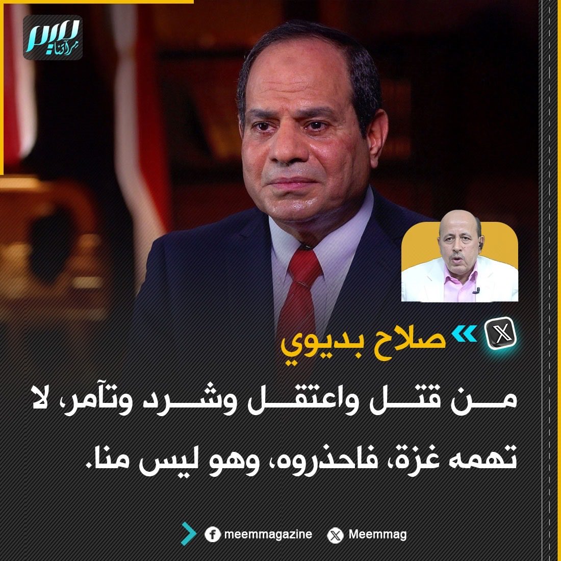 كاتب مصري: من قتل واعتقل وشرد وتآمر، لا تهمه غزة، فاحذروه، وهو ليس منا.