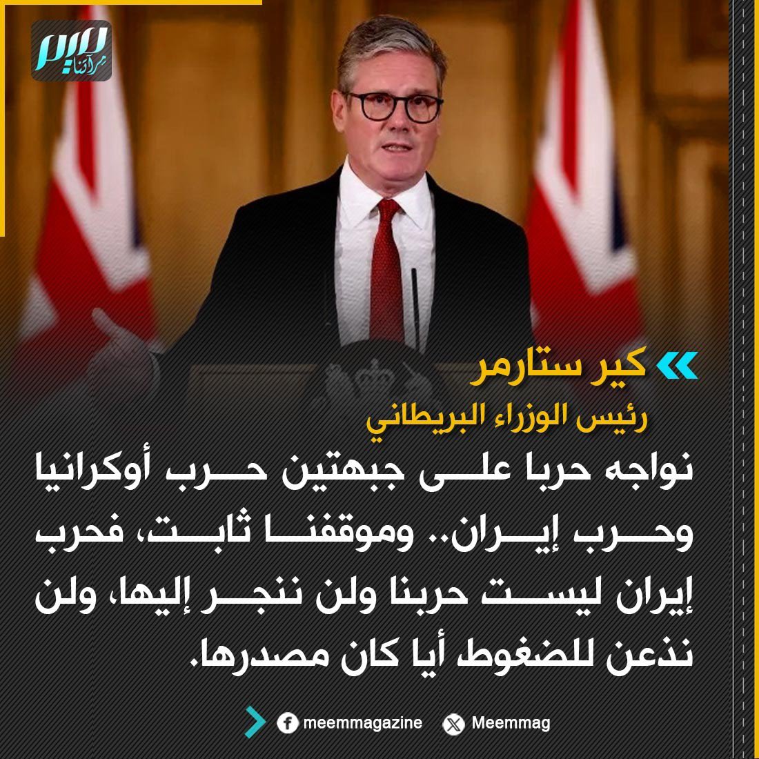 كير ستارمر: حرب إيران ليست حربنا، ولن ننجر إليها، ولن نذعن للضغوط أيا كان مصدرها.