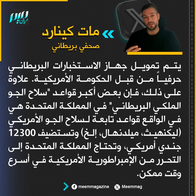 كينارد: يتم تمويل جهاز الاستخبارات البريطاني حرفياً من قبل الحكومة الأمريكية. علاوة على ذلك، فإن بعض أكبر قواعد "سلاح الجو الملكي البريطاني" في المملكة المتحدة هي في الواقع قواعد تابعة لسلاح الجو الأمريكي (ليكنهيث، ميلدنهال، إلخ) وتستضيف 12300 جندي أمريكي، وتحتاج المملكة المتحدة