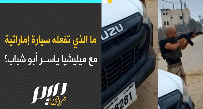 في مشهد مريب أثار التساؤلات والغضب.. فيديو يُظهر غسان الدهيني المسؤول الفعلي عن ميلشيا ياسر أبو شباب وهو يلوح بالسلاح إلى جانب سيارة بلوحة إماراتية من الشارقة.. برأيكم ماذا تفعل مركبات ابن زايد في غزة؟