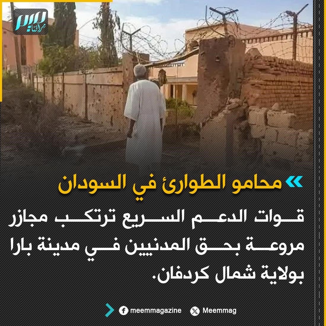 محامو الطوارئ في السودان: قوات الدعم السريع ترتكب مجازر مروعة بحق المدنيين في مدينة بارا بولاية شمال كردفان.