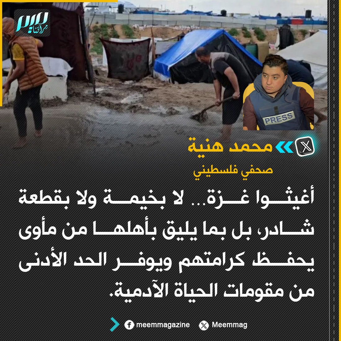 محمد هنية: أغيثوا غزة… لا بخيمة ولا بقطعة شادر، بل بما يليق بأهلها من مأوى يحفظ كرامتهم ويوفر الحد الأدنى من مقومات الحياة الآدمية.