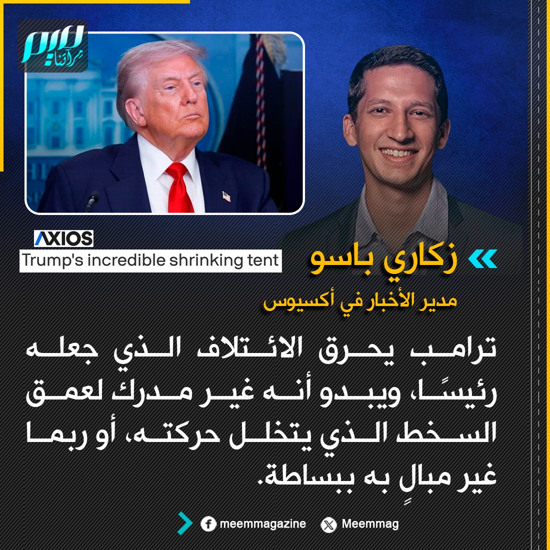 مدير الأخبار في موقع "أكسيوس" الأمريكي الشهير: ترامب يحرق الائتلاف الذي جعله رئيسًا