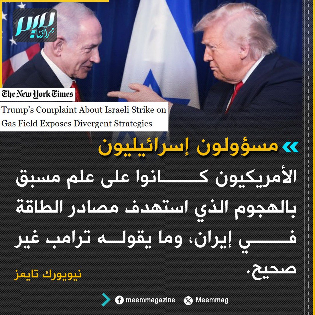 مسؤولون إسرائيليون: الأمريكيون كانوا على علم مسبق بالهجوم الذي استهدف مصادر الطاقة في إيران، وما يقوله ترامب غير صحيح.