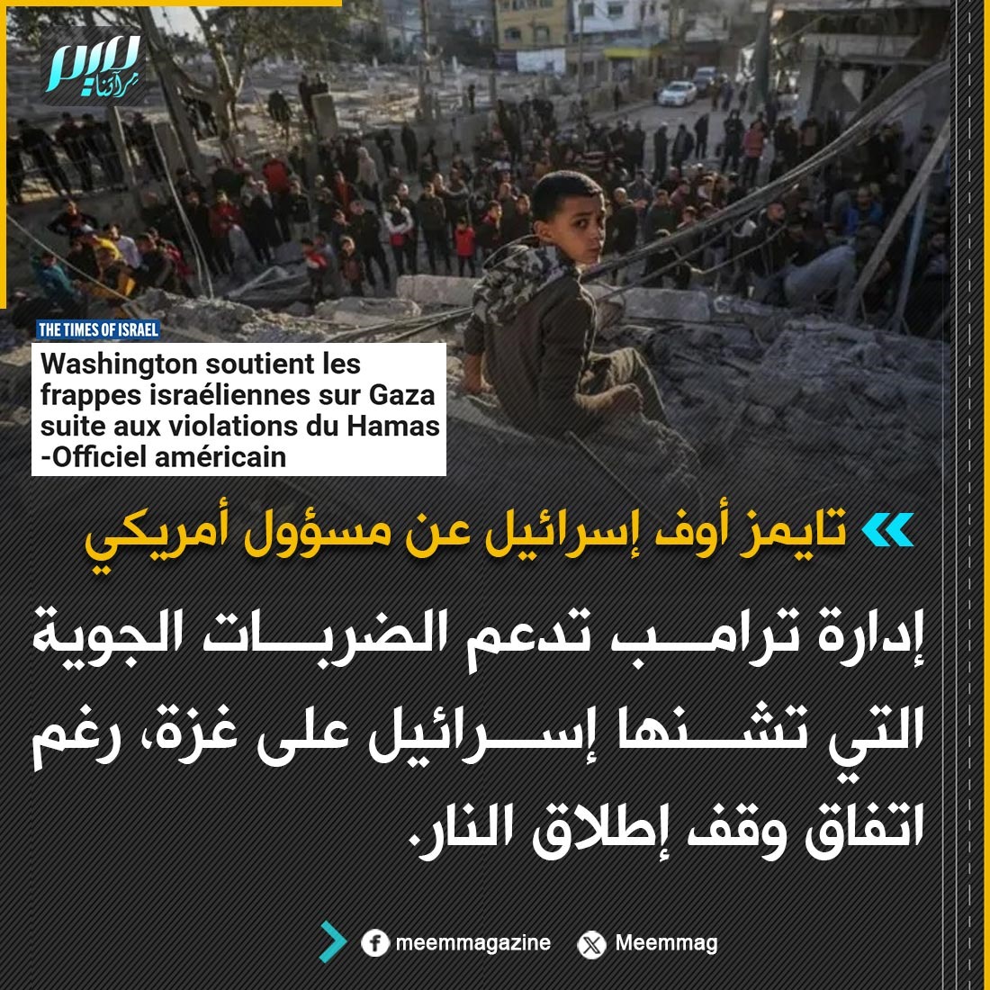 مسؤول أمريكي: إدارة ترامب تدعم الضربات الجوية التي تشنها إسرائيل على غزة، رغم اتفاق وقف إطلاق النار.