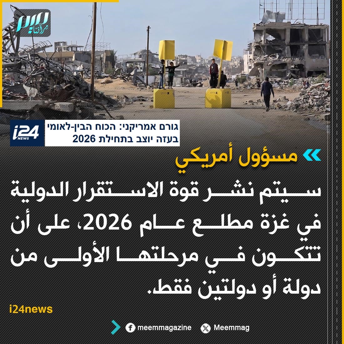 مسؤول أمريكي: سيتم نشر قوة الاستقرار الدولية في غزة مطلع عام 2026، على أن تتكون في مرحلتها الأولى من دولة أو دولتين فقط.