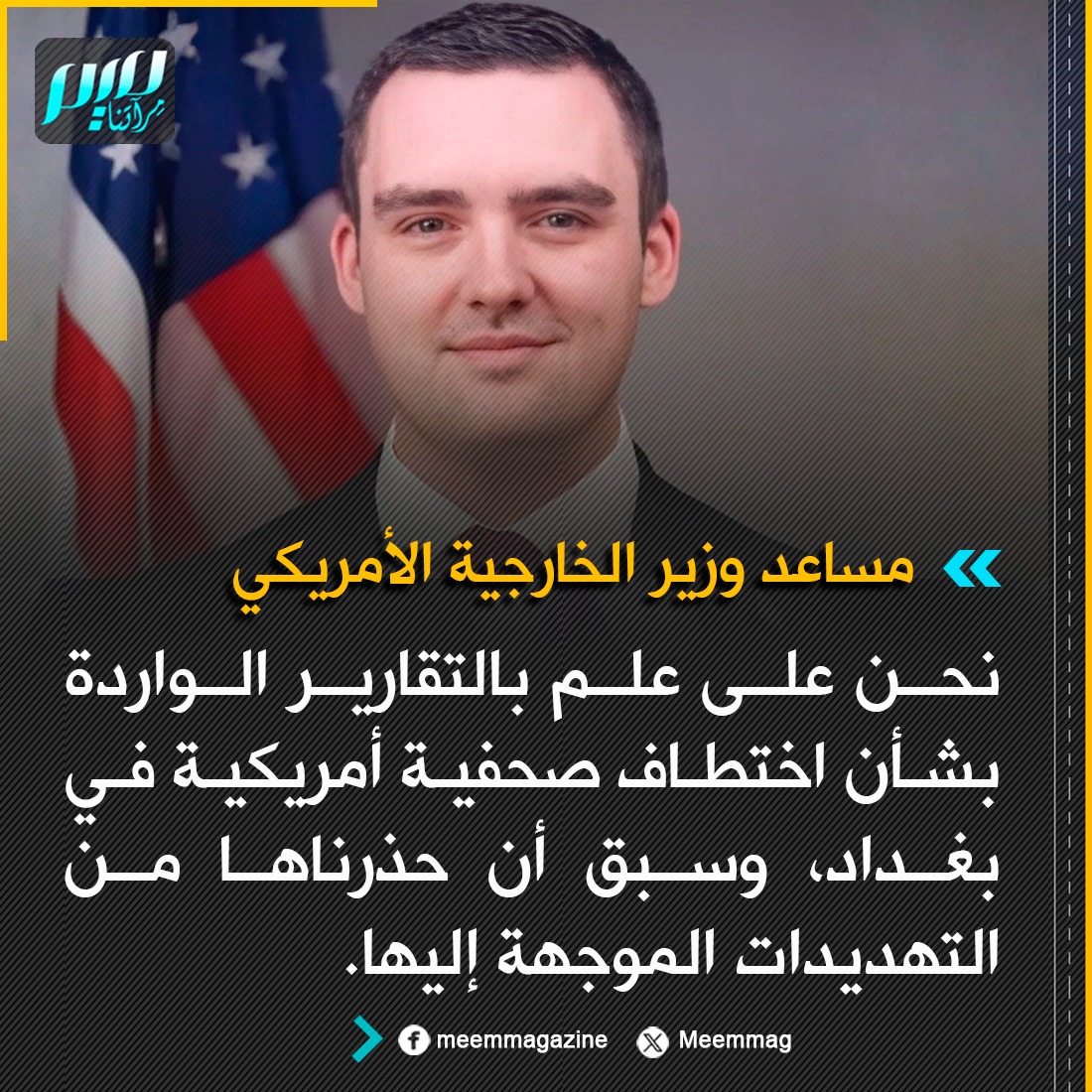 مساعد وزير الخارجية الأمريكي: نحن على علم بالتقارير الواردة بشأن اختـ ـطاف صحفية أمريكية في بغداد، وسبق أن حذرناها من التهديـ ـدات الموجهة إليها.