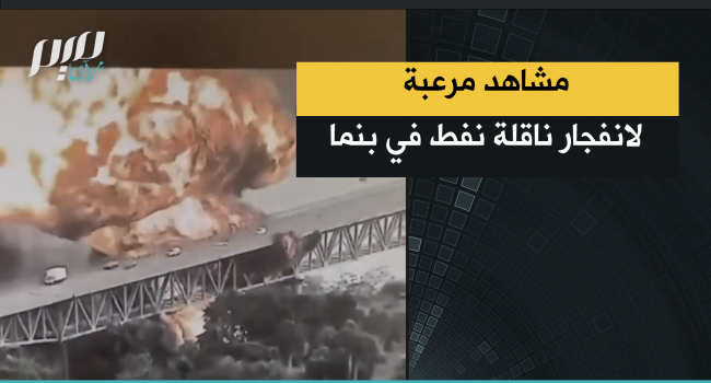 مشاهد متداولة توثق لحظة اندلاع حريق هائل جراء انفجار ناقلة نفط بالقرب من جسر الأمريكتين في مدينة بنما.