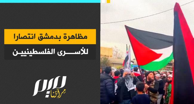 مظاهرة في كفر سوسة بالعاصمة السورية دمشق انتصارا للأسرى الفلسطينيين ولقطاع غزة.