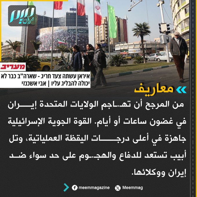 معاريف: من المرجح أن تهـ.ـاجم الولايات المتحدة إيران في غضون ساعات أو أيام، والقوة الجوية الإسرائيلية جاهزة في أعلى درجات اليقظة العملياتية.