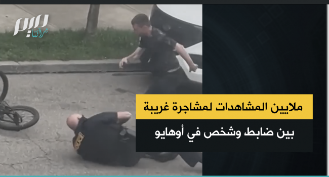 ملايين المشاهدات على وسائل التواصل الاجتماعي لفيديو مشاجرة غريبة بين ضابط شرطة وشخص في سينسيناتي، بولاية أوهايو الأمريكية.