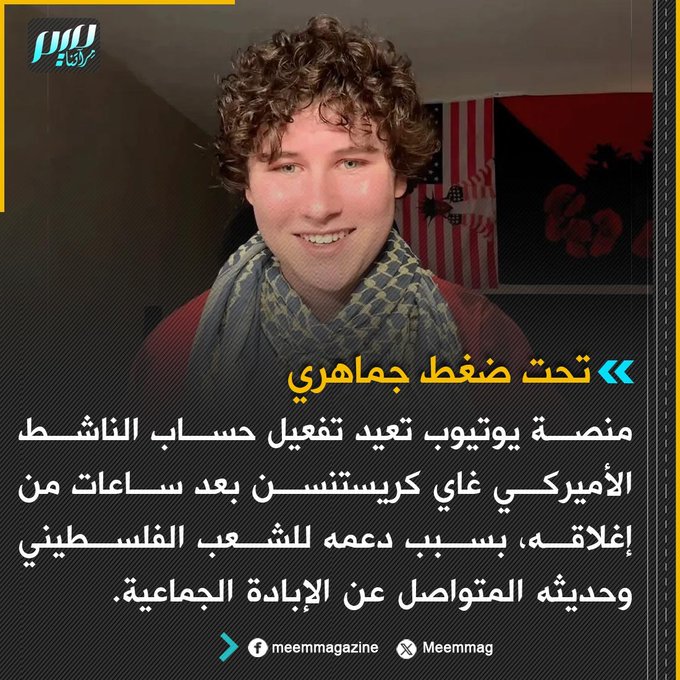 تحت ضغط جماهري.. منصة يوتيوب تعيد تفعيل حساب الناشط الأميركي غاي كريستنسن بعد ساعات من إغلاقه.