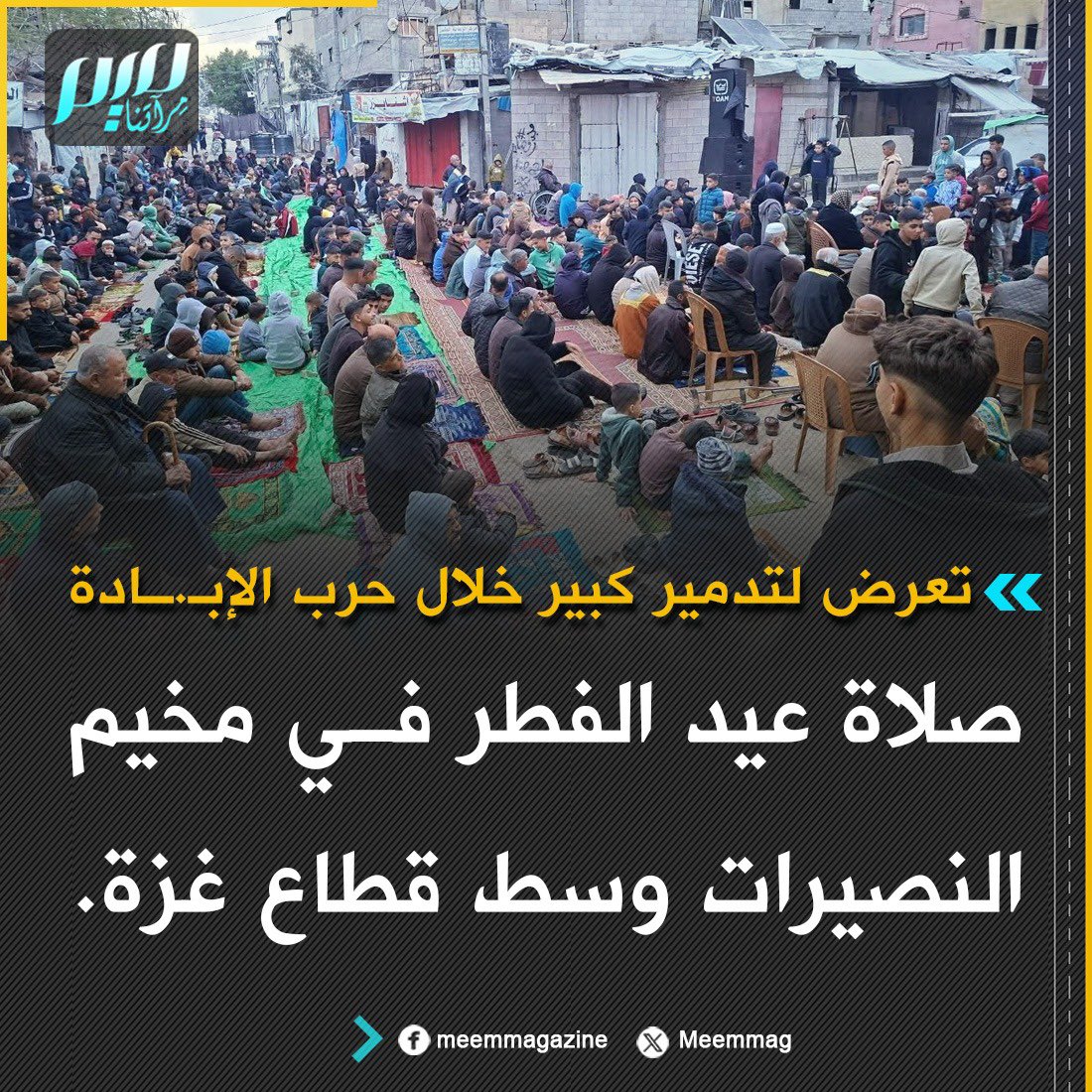 من صلاة عيد الفطر في مخيم النصيرات وسط قطاع غزة، الذي تعرض لدمار كبير خلال حرب الإبـ.ـادة.